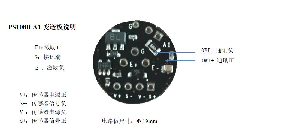 1、压力变送板上的E+对应激励正端、E-对应激励负端,分别连到连接座上,与外围互连。